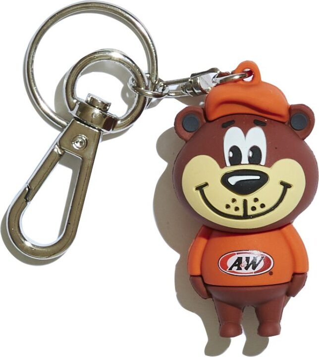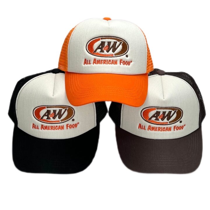 店舗内の販売スペースには小物アイテムも充実!中でも、TシャツとコーデしやすいロゴメッシュキャップとA&Wのマスコットキャラクラー「ルーティ」のフィギアキーホルダーが売れ筋商品の為、要チェックです!