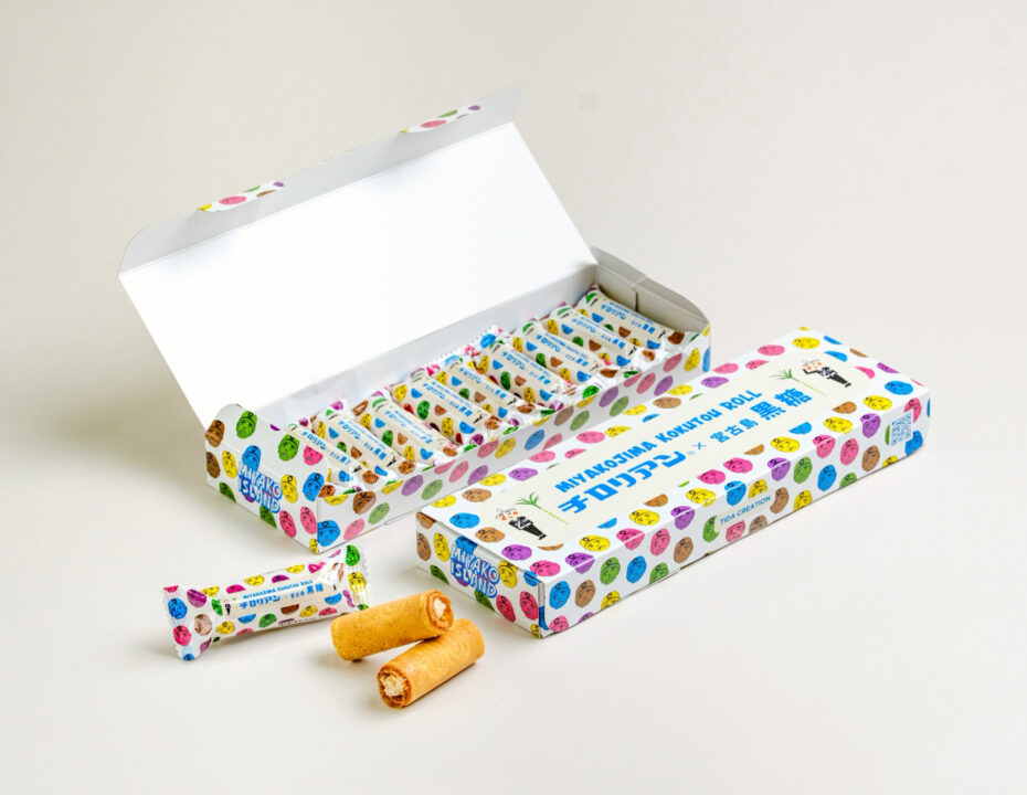 チロリアン宮古島黒糖味は、南国雑貨TIDA 20周年を記念しチロリアンとコラボした限定商品で、宮古島多良間産の黒糖を使った特別なロールクッキー。お土産にも喜ばれます。